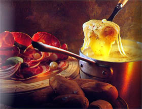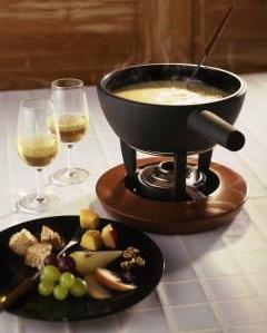 フォンデュー・ワインとしては: ヌシャテルNeuchâtel、ビールBiel湖、ムルテンMurten湖、チューリッヒZürich、レマンLeman湖地域のワイン、またはファンダンFendantがあげられます。 ただ、若いチーズを使う淡白なフォンデューが好みの場合には酸度の弱いワインがより適していると思います。